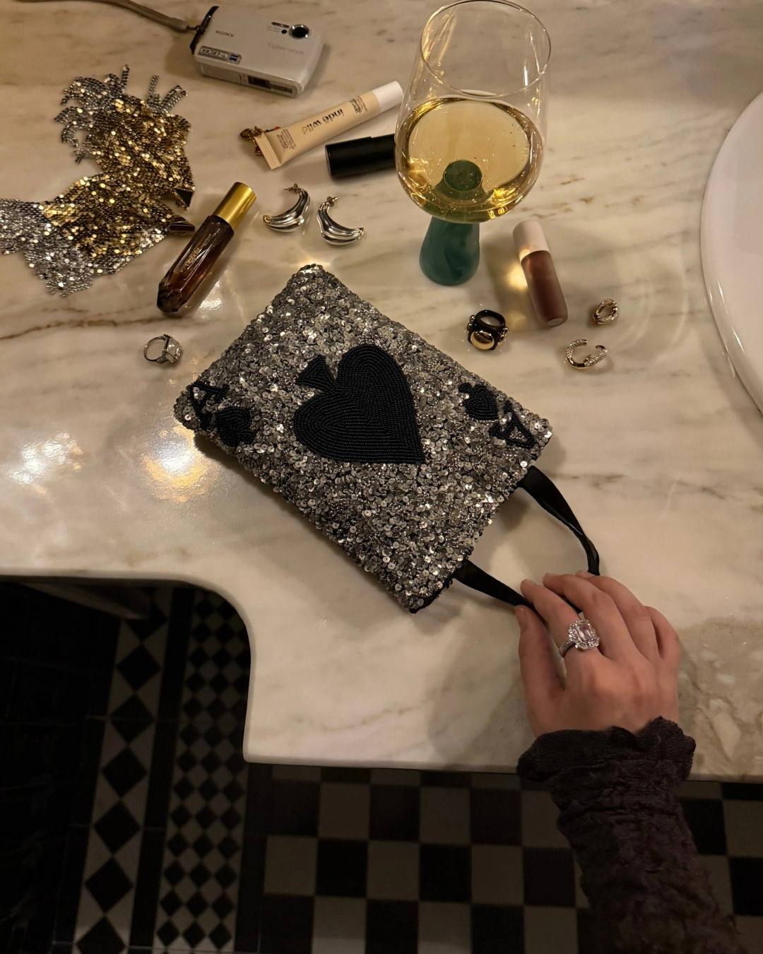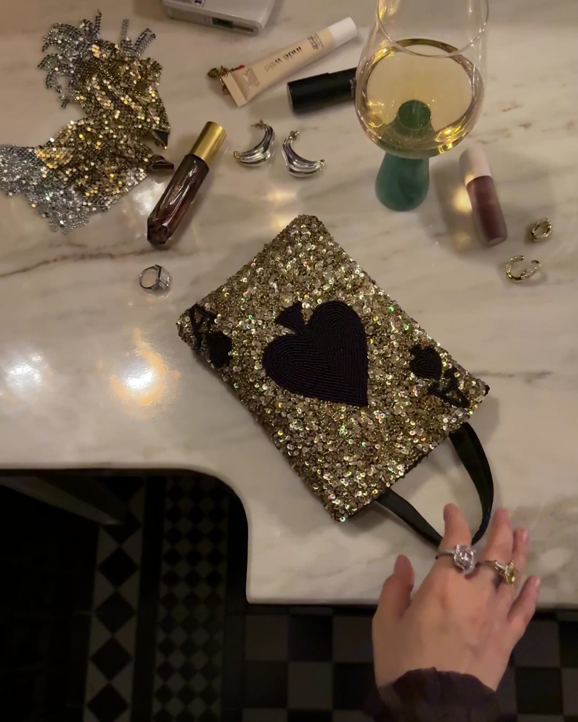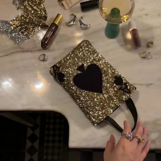 Always dealing drama and fun - The limited-edition Ace mini tote bag is a dreamy and cheeky carryall that is hand embroidered with sequins and beads gold on one side and silver on the other, accounting for all your moods.